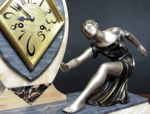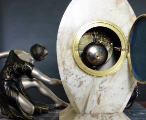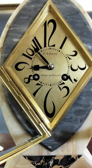 Gilded dial with Art Deco style numerals and original Art Deco style steel hands, the diual signed ‘A.Leroy, St. Dust-En-Chaussee’.