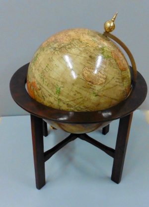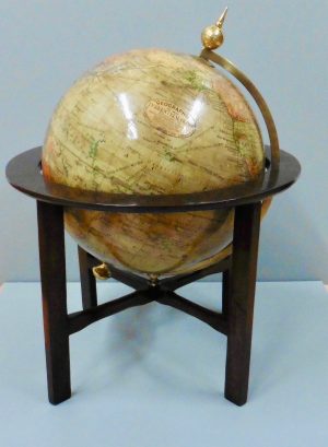 This globe is complete with it’s original coloured paper gores, brass half meridian surmounted by a brass finial.