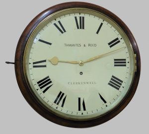 English Round Dial Wall Clock by Thwaites and Reed, London